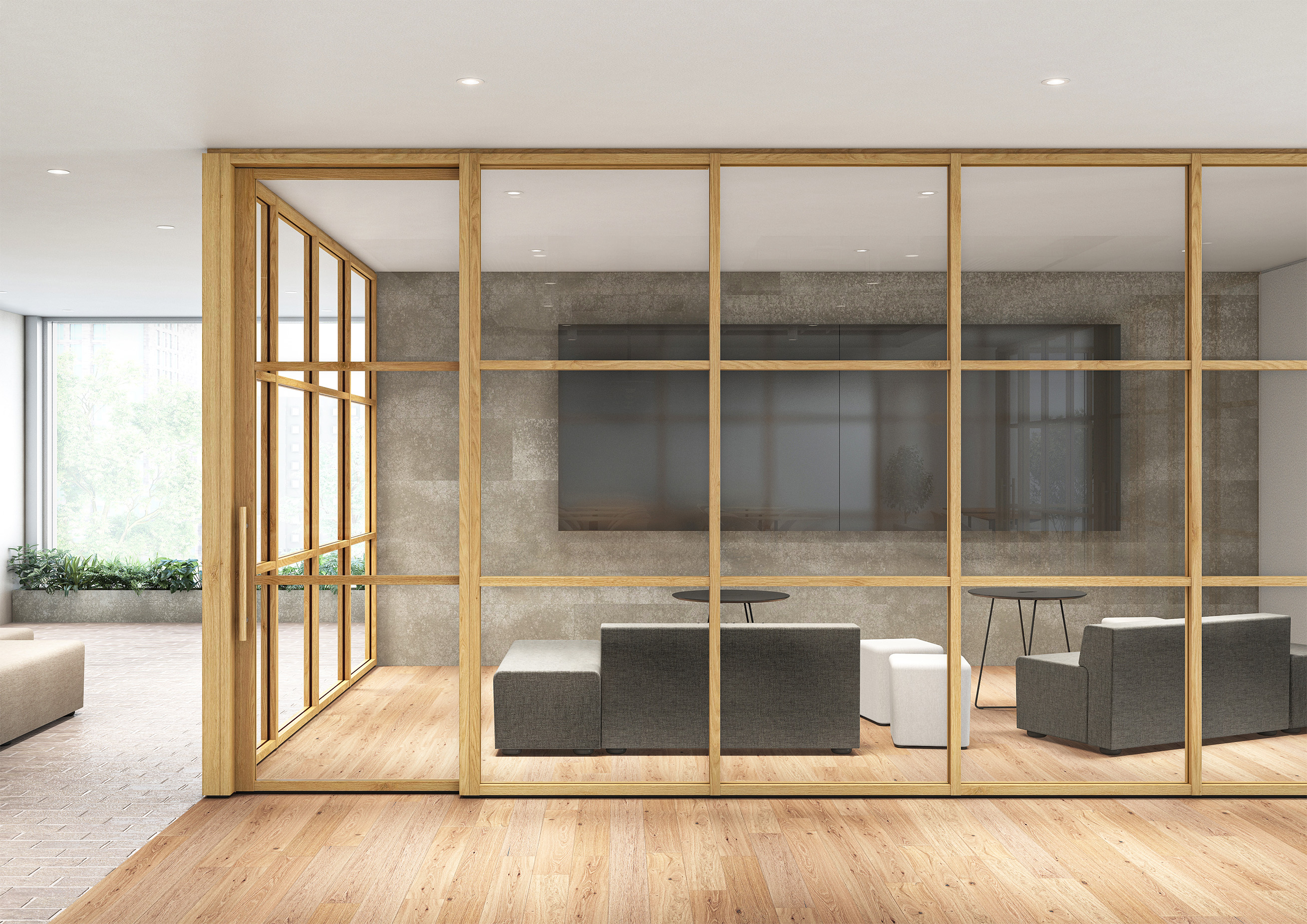 木製のパーティションは殺風景なオフィスのインテリアを一新させることにつながるが、そのままでは耐火の観点で使用できない。本製品は下地に金属を用いて独自の貼り方を行なっているため、木製特有の温かみを持ちながらも工業製品としての精度を担保している点を高く評価した。また木製の建具のサイズ感を踏襲し、シートではなく突板を使用する事で、木製建具の印象に近づけることに成功している。