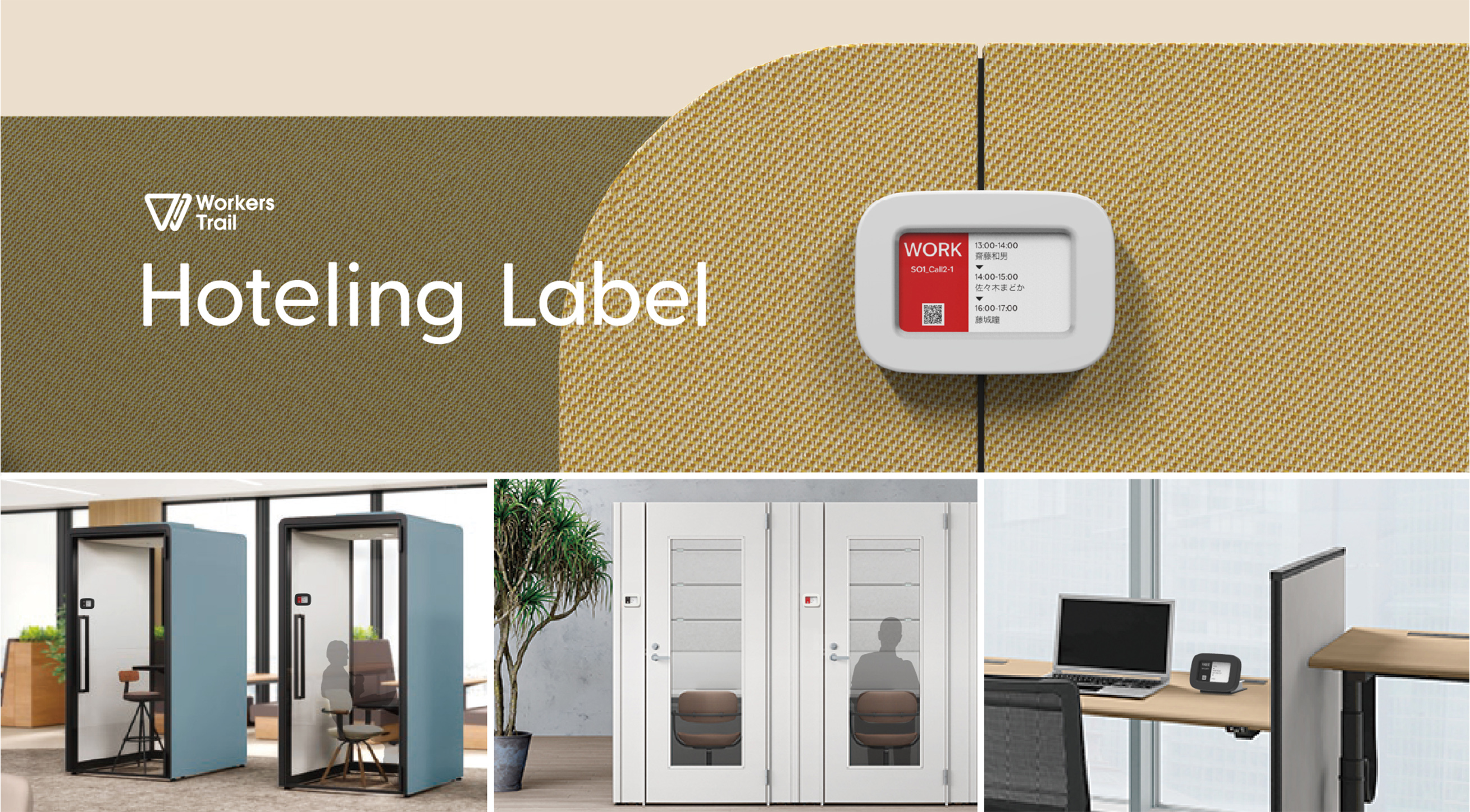 Workers Trail Hoteling Labelのデザインは、シンプルで直感的なUIが特徴であり、働く場所の選択と利用を円滑にサポートする。電子ペーパーを活用したリアルタイムな空き状況表示や、その場での予約を可能にするQRコード機能により、オフィススペースの効率的な利用を促進し、完全ワイヤレス設計と柔軟な設置方法で多様なオフィス環境に適応可能な点が高く評価された。シンプルさと機能性が融合したデザインである。