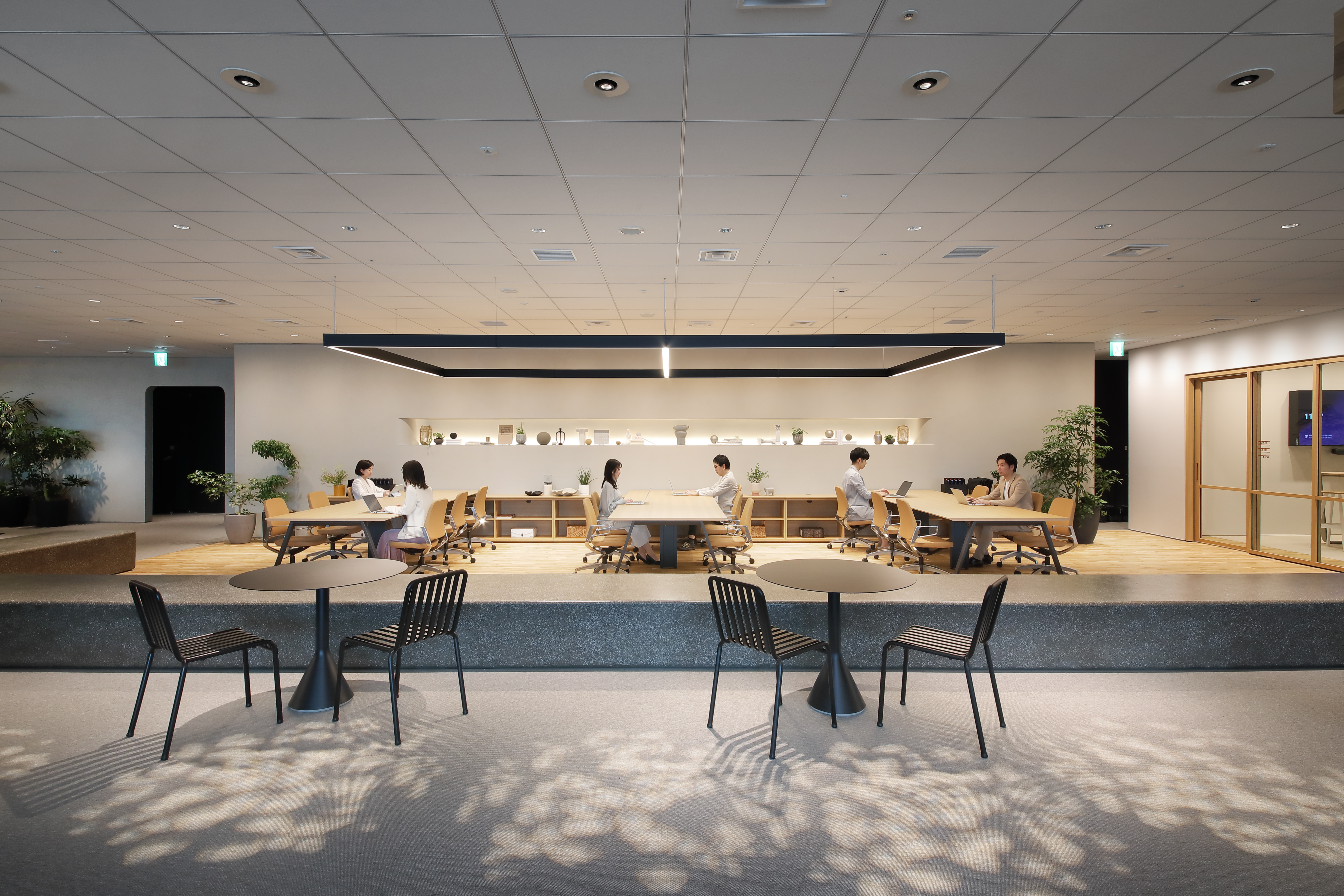 オフィス回帰を目的として、共創、共働、共生の3つのテーマのもと、自然に人が集い、つながりを育む「居心地の良さ」のデザインを追求しながら、シームレスな働き方と環境に配慮した空間です。