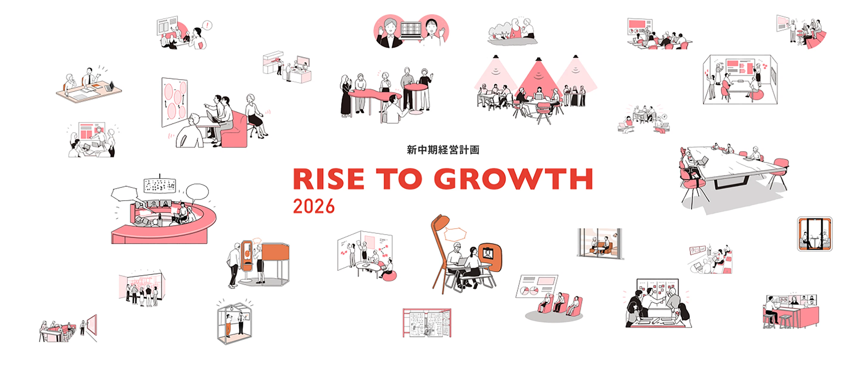イトーキグループの新中期経営計画(RISE TO GROWTH 2026)については、以下をご覧ください。
