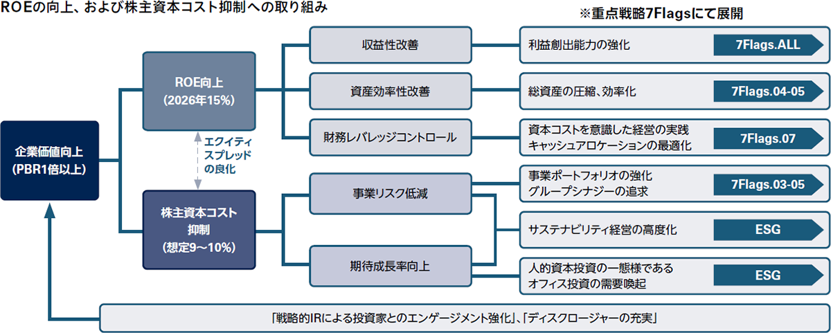 また、イトーキは、本中計の重点戦略である7FlagsおよびESG戦略と紐づけてエクイティスプレッドのさらなる良化に取り組んでいます。イトーキはかつて6年間も業績予想未達で終わっており、株価が継続的に下落した経緯があります。そのため、「コミットした数字は必ず達成する」という姿勢を強く意識し、フォーキャストの精度向上に努めていきます。
