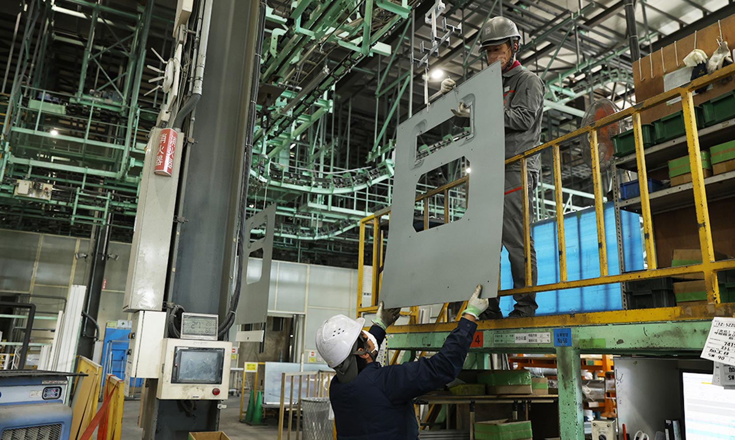 野口(塗装):私たちの役割は資材が届き次第、“ミスなく”出荷日に間に合うように塗装することです。特殊な形状をしているR曲げパネルは機械の力だけではカーブの箇所を塗装できません。補正作業として、機械の塗りに合わせて人の手で塗装する必要があります。ここは、「ADDCELL」ならではの難しさですね。しかし、難しいからこそ自分たちでないと作れない自負がある。私にとってはやりがいのある製品です。