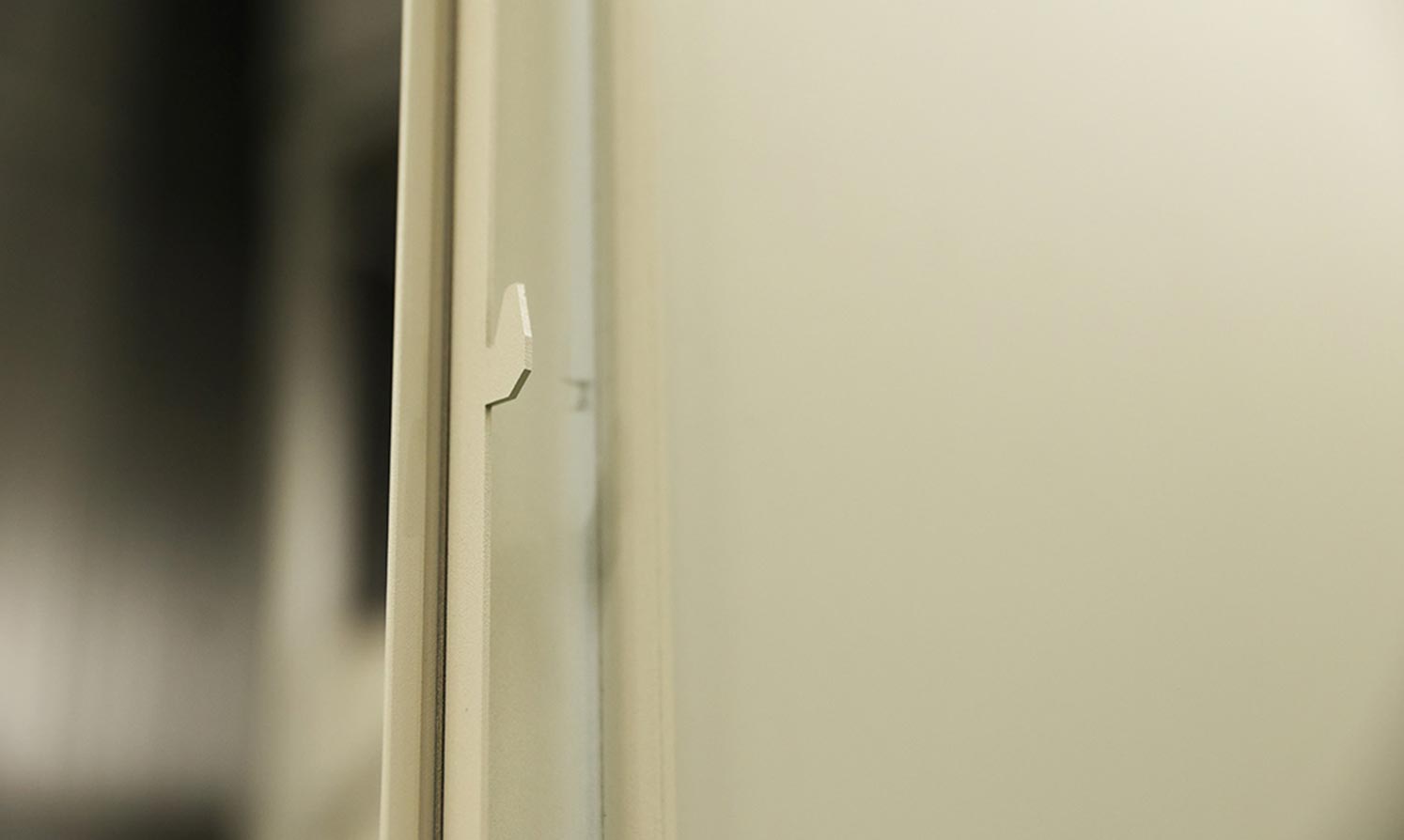 野口(塗装):完成品では見えない2箇所にも注目してほしいです。一つ目はR曲げパネルの裏にあるL字型のフック。これがあることでR曲げパネルはズレることなく組み立てることができます。等間隔でL字型フックを取り付ける作業も私たちの仕事です。二つ目は塗装。実は取り付けると隠れてしまう内側まで人の手で塗装しているんです。見えない部分にも愛があることを伝えたいです!
