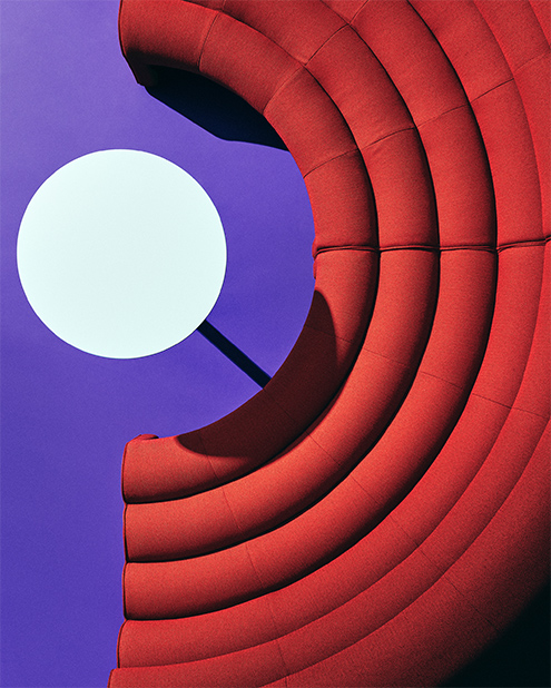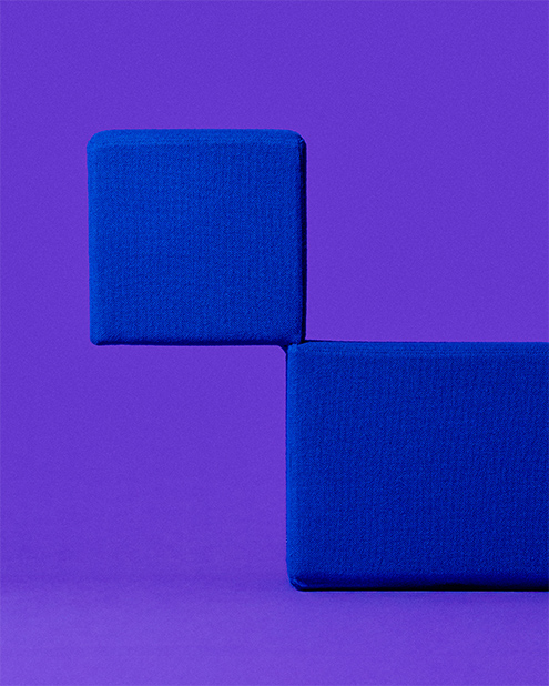 大小サイズの異なるブロックが一つのエッジでつながり、独特なたたずまいを生み出すソファです。