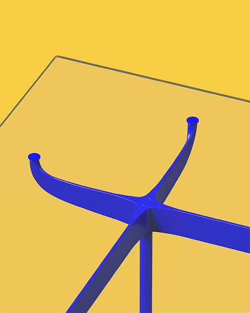 骨格を思わせるフレームがガラスの天板を点で支えている、有機的な構造が特徴のテーブルです。4種のガラス天板と5種のフレームから選べ、シンプルながら組み合わせや拡張が可能です。独立させたとき、連結させたときでまた違った場を生み出します。自然と植物、生物のすがたを想起させつつも、さりげないたたずまいは、人の心を開き、自然と会話を生み出します。