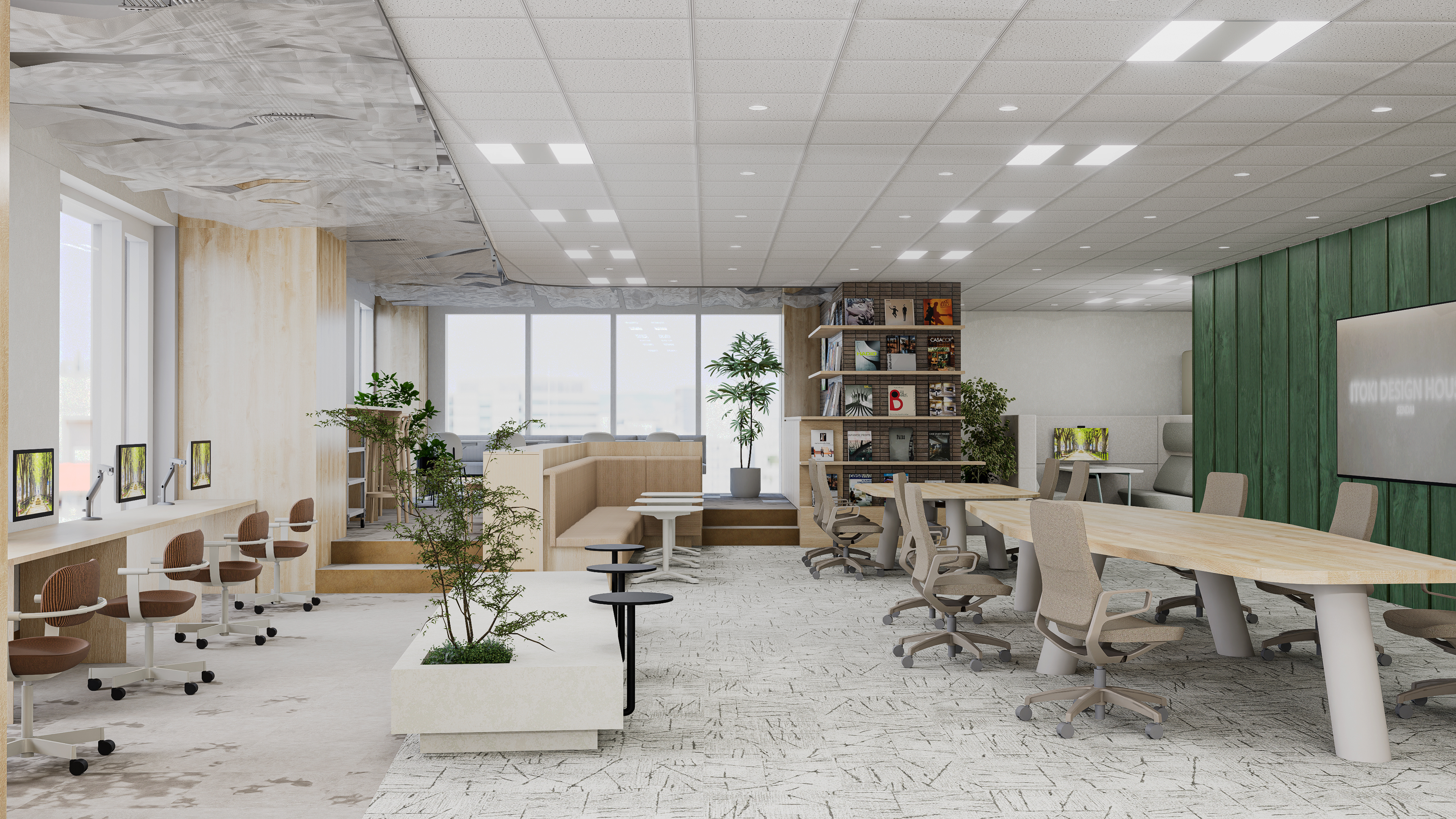 次の3つの挑戦を通じて、自社だけでなく同様の課題を抱える東北エリアの企業に対しても、オフィスがもつ“空間の力”を活かした解決策の一例を示すことを目指しています。その象徴が、「ITOKI DESIGN HOUSE SENDAI」です。