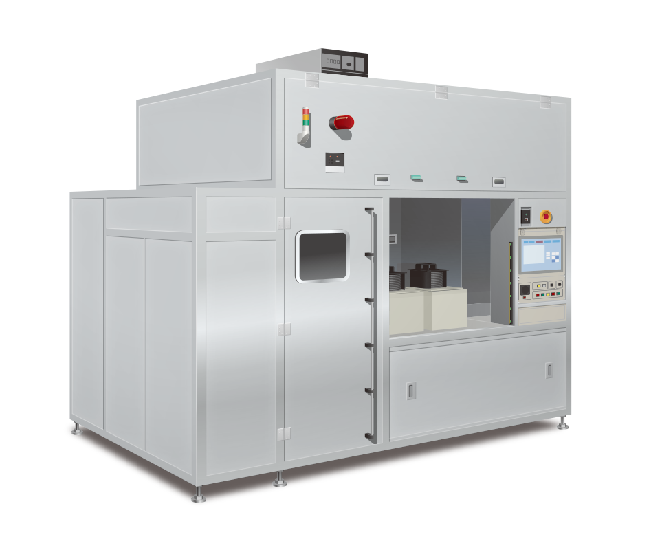 ウエハーの保管や輸送で使われる密閉容器であるFOUPを洗浄する装置です。独自の洗浄処理で、FOUP内に残る不要物やパーティクルの洗浄が可能です。更に、瞬間加熱式の採用で頑固な接着剤や粒子を迅速に洗浄可能であり、高い洗浄能力を有しています。また洗浄液は純水のみで使用量も少ないため、環境負荷低減に繋がります。FOUPの ボックスと蓋を別エリアにて洗浄・真空プロセスにかけることも可能です。