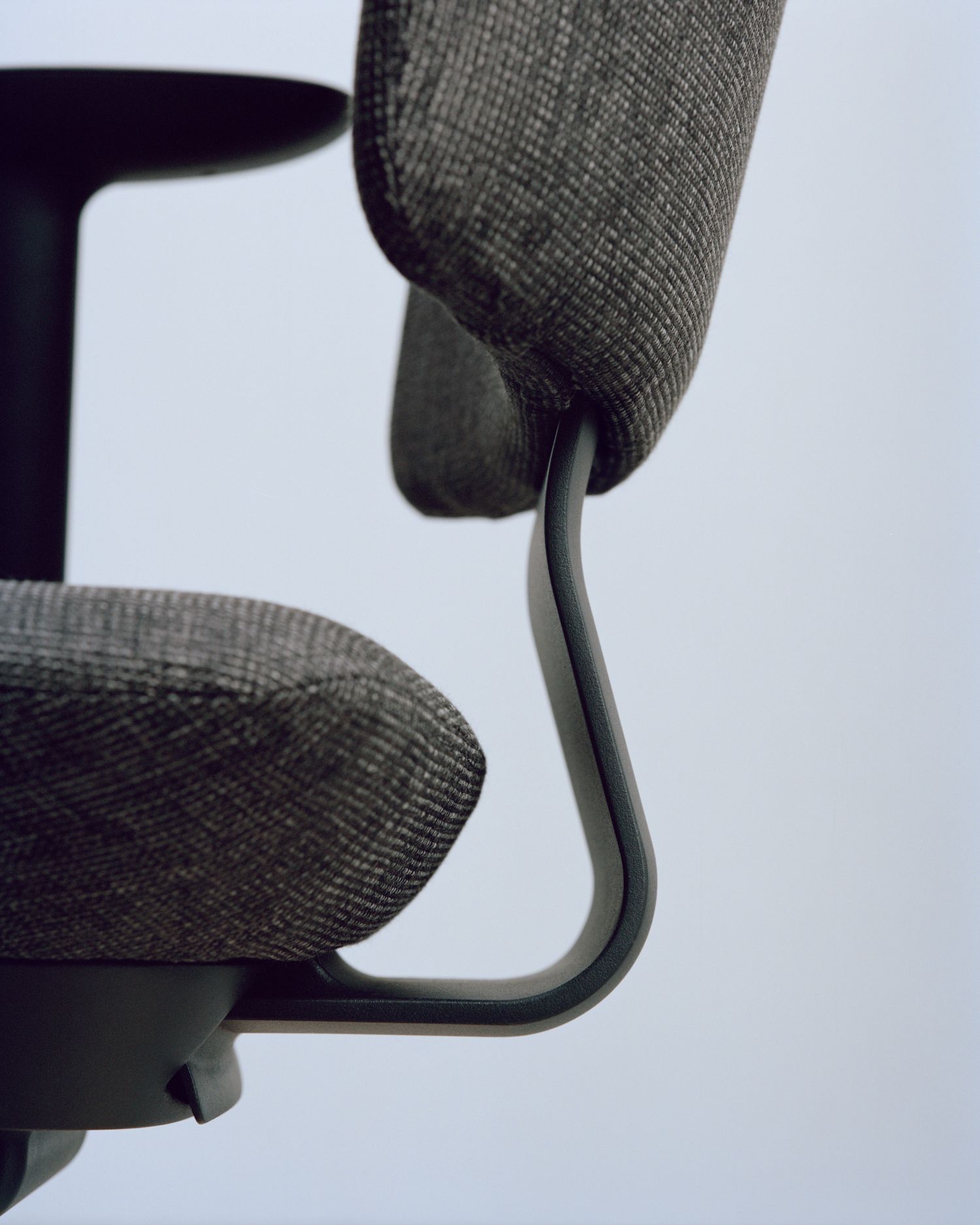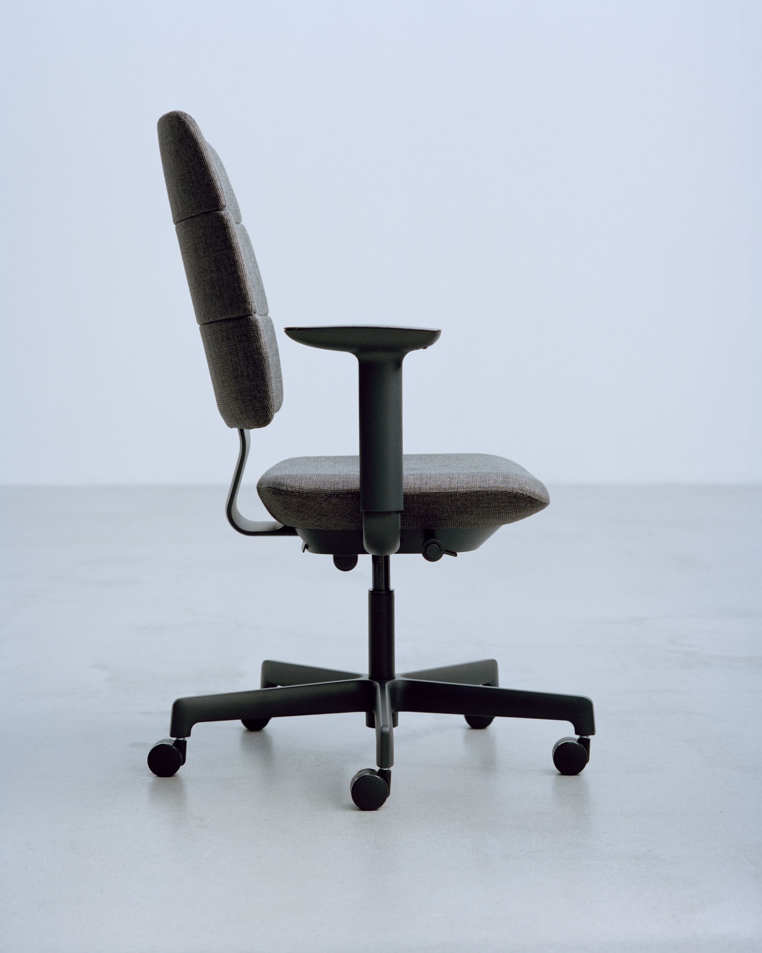 従来のオフィスチェアに多いエルゴノミックなフォルムから一線を画し、シンプルなスクエアのシルエットの中に、エルゴノミクスに基づいた3次元のカーブを内包。“存在を主張せず、使う人の姿を引き立てる”――ノイズのない形状と、身体をやわらかに支える高い快適性を両立したデザインです。