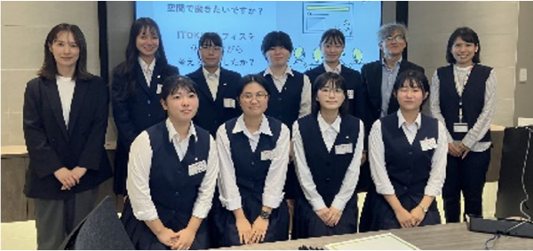 学生のみなさまにイトーキの企業活動を知っていただくために学生の訪問学習を受け入れています。2024年は、2つの高校から学生を迎え、オフィス見学を通じてイトーキの働き方や健康経営への取り組み、サステナビリティ活動について紹介しました。今後も未来を担う世代の学びと成長を支援していきます。