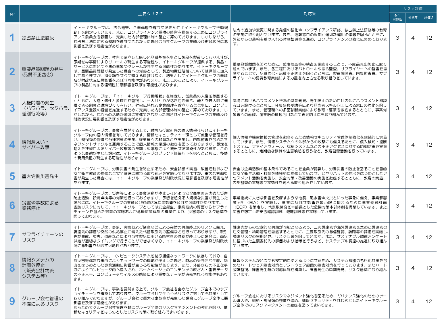2.  イトーキグループの資産の保護、事業および業務の継続