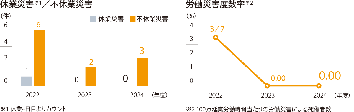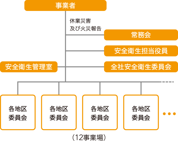 全社安全衛生委員会を設置し、全社統一の安全衛生基本方針・取り組みを定めるとともに、従業員が主体的に安全対策に取り組める環境整備を行っています。本委員会の活性化により、効率的で持続可能な安全管理体制の構築を目指します。