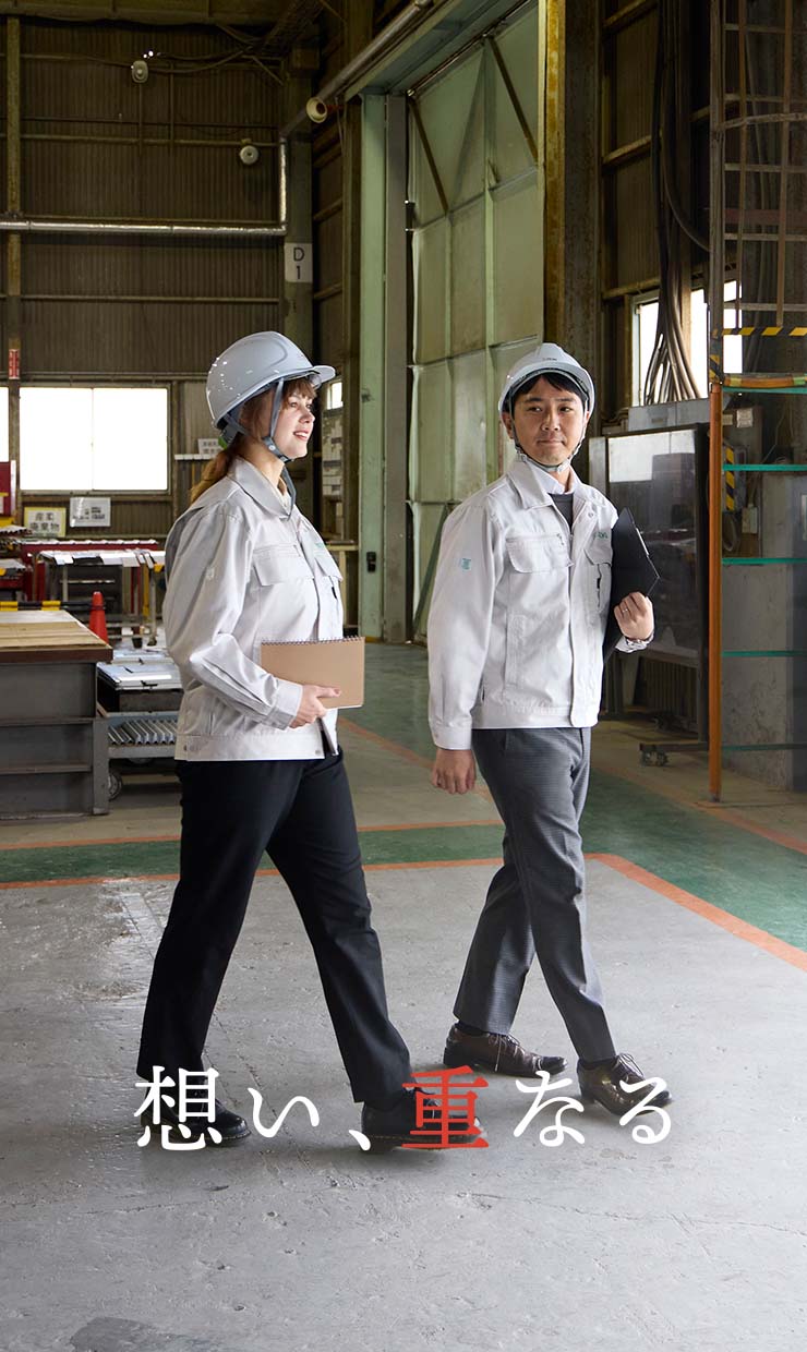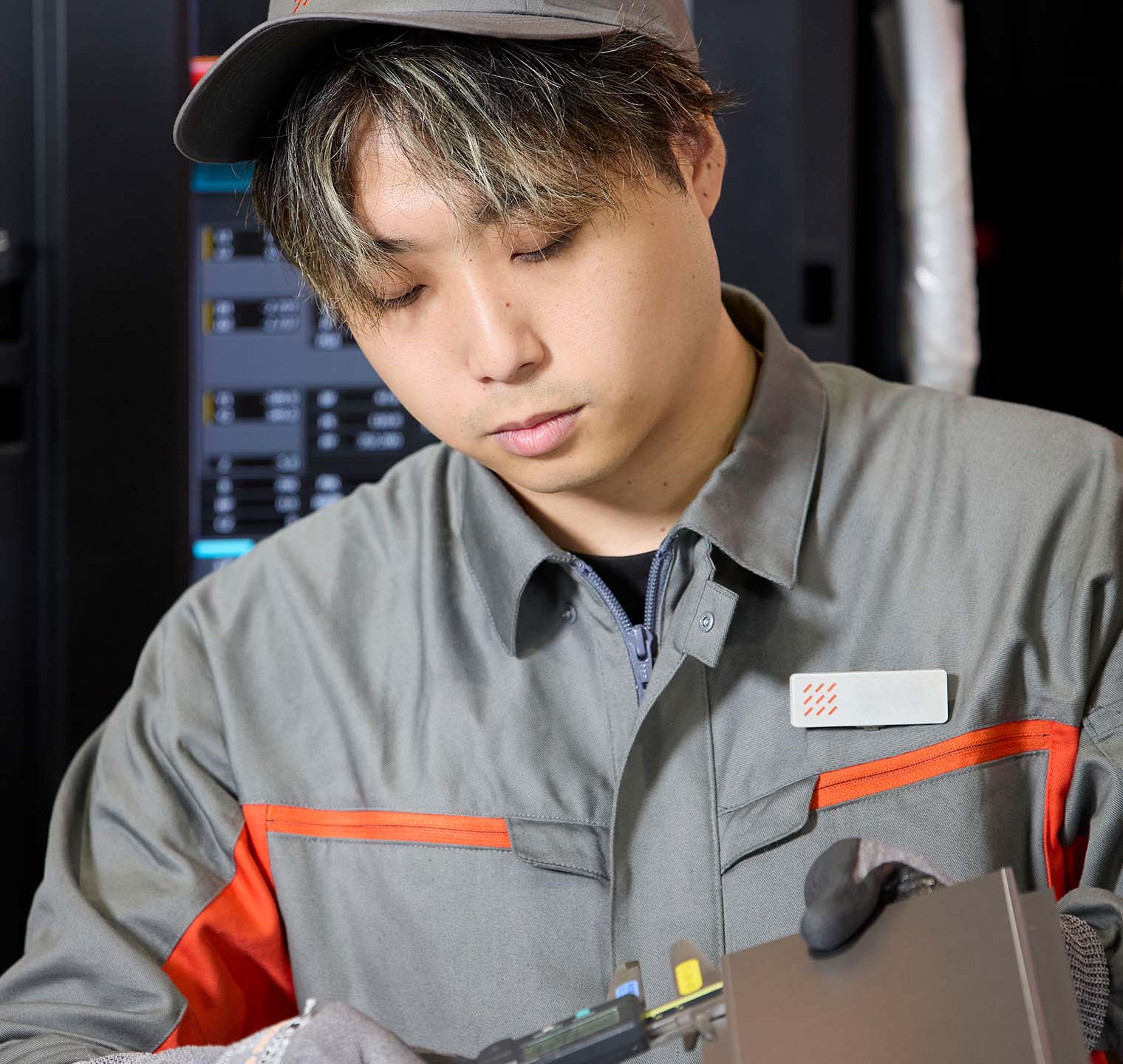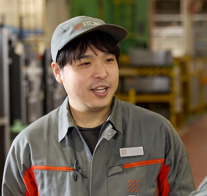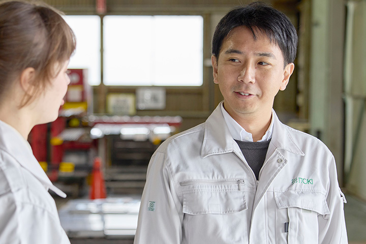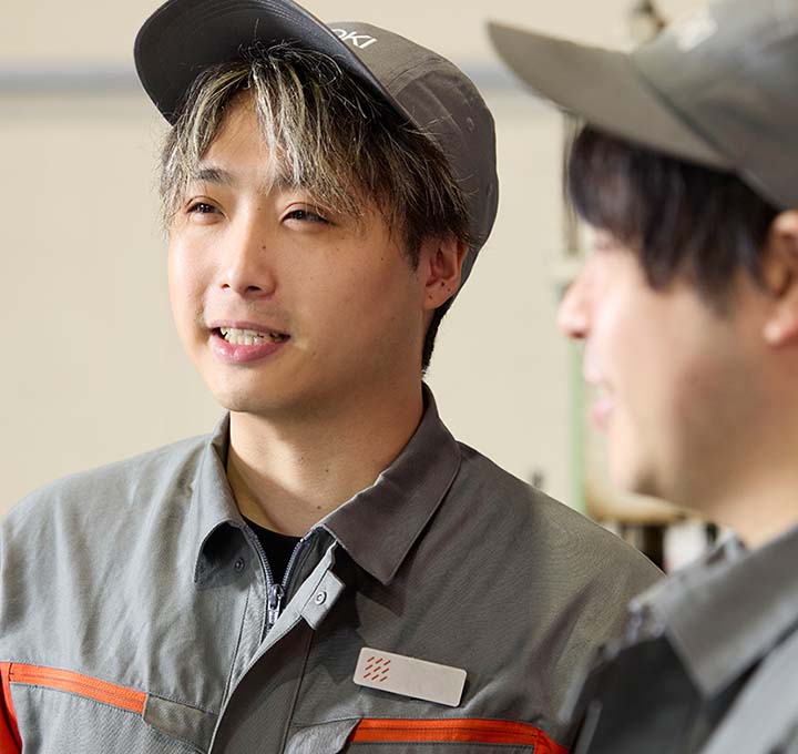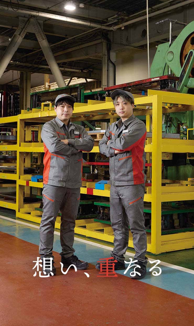 上司と部下であり、兄弟でもある二人が担当しているのは、キャビネットの一部となる部材のプレス加工。マシンの細かな調整や、工程設計の最適化と日々向き合っている。そんな二人の情熱は業務だけに留まらず、製造現場の課題改善を目的とした社内コンペにも注がれている。互いに負けまいと創意工夫を競い合い、時には協力することで、これまでに多くのアイデアが生み出された。常に切磋琢磨し続ける彼らの成長に終わりはない。