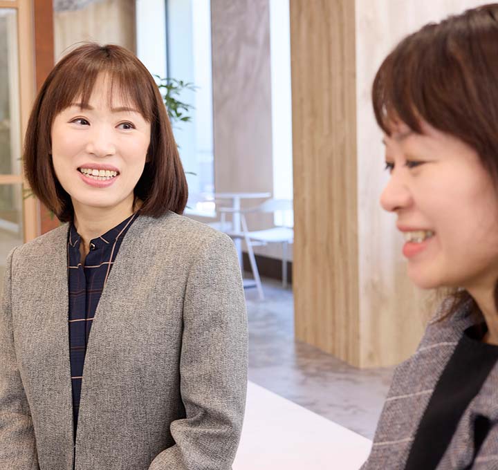 商品の受発注や納品スケジュールの管理など、イトーキのバックオフィスを支える「営業支援」。二人の出会いのきっかけは、福島支店に入社した社員が、離れているが同じ仕事をしている盛岡にいる先輩を頼ったこと。電話やメールでやりとりをするにつれ、ふたりは意気投合し、お互いに何かあれば相談し合う関係に。いまでは東北各地に点在している営業支援とも連携し、頻繁に知識やノウハウを共有し合っている。福島と盛岡の二人をはじめ、距離を越えた絆がイトーキに広がっている。