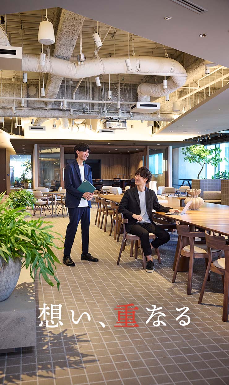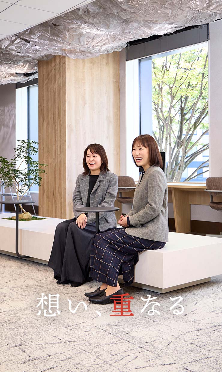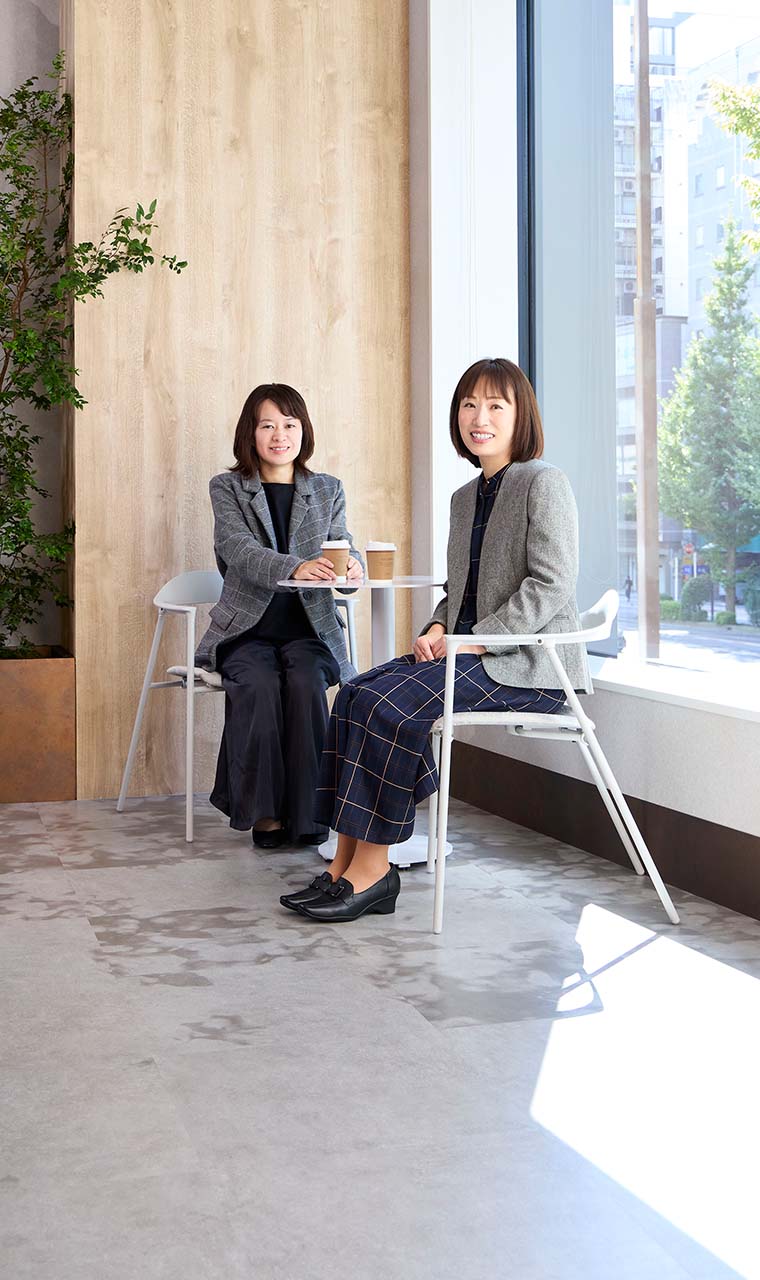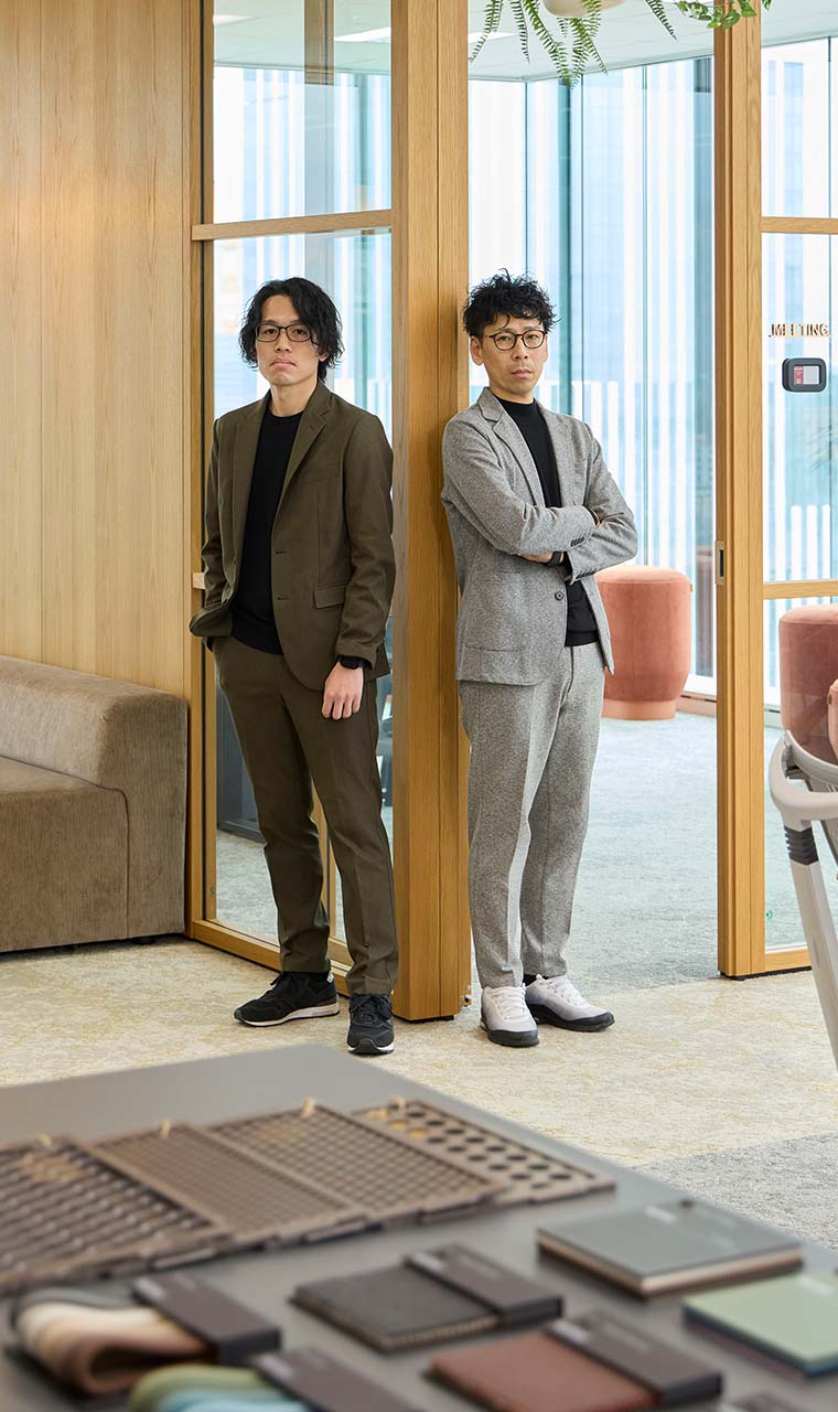 デザイン事務所市場を担当する営業の先輩後輩。デザイン性が高く先進的なオフィスを実現するため、イトーキの商材を特注対応でカスタマイズし提案を行っている。インテリアデザイナーや内装業者などのプロフェッショナルが集うなか、エキスパートとして、オフィス空間の創造に挑む先輩社員。そんな先輩に憧れ、追いかける後輩社員にも、プロ意識や仕事への情熱が受け継がれている。