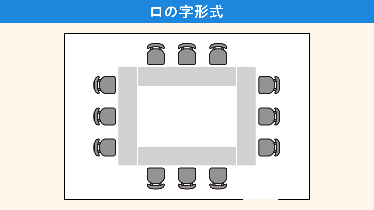 横長の机を漢字の「口」のように並べるレイアウトです。