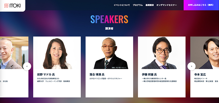 2024年10月30日から11月1日の3日間開催された、イトーキ最大級のオンラインイベント 【ITOKI Workstyle NEXT 2024 ー「ひと」から考える、オフィスと働き方の未来ー】。基調講演には落合博満さん、前野マドカさん、伊藤邦雄さんという各界の錚々たる顔ぶれをお招きし、「ひと」を中心にオフィスと働き方、そしてその未来を考えるというテーマでお届けしました。