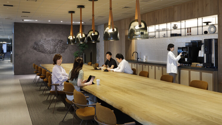業種の特性上、固定席の多いオフィスでも、カフェスペースを活用することで対面でのコミュニケーションが取りやすくなるというメリットもあります。