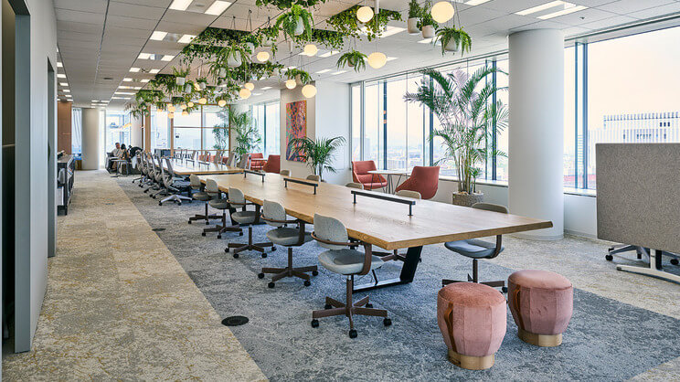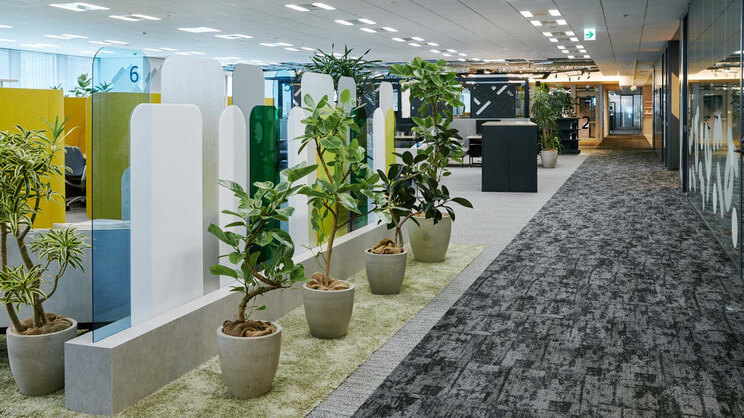実際のオフィスでは、タイルカーペットがどのように活用されているのでしょうか。ここでは、デザイン性と機能性を両立させた印象的な事例を3つピックアップしてご紹介します。ぜひ参考にしてください。
