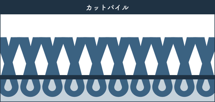 パイルのループ部分をカットしたタイプです。ループパイルより柔らかい質感で、吸音性に優れています。