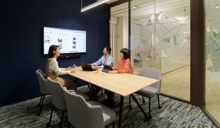 デジタルツールを導入して業務効率を上げたり、オフィスの使われ方や従業員の状態をデータで取得・分析することで、効率的で快適なオフィス環境の実現を目指します。