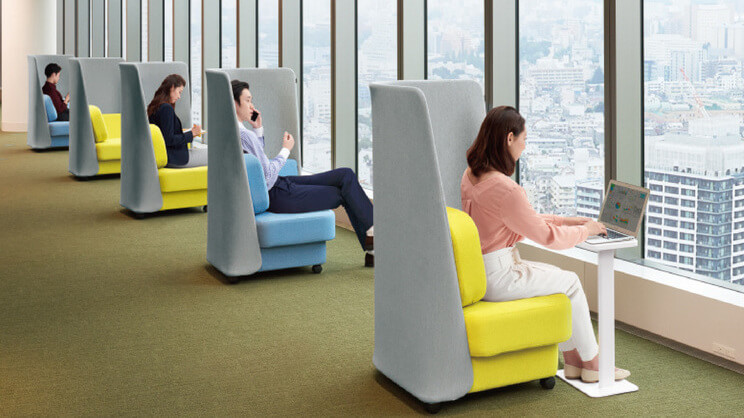 背面にパネルのあるハイバックタイプは、周囲の視線を遮り、適度なプライベート空間を作り出せます。パネルも軽量なので、必要に応じてオープンな空間とクローズドな空間を自在に切り替えられます。