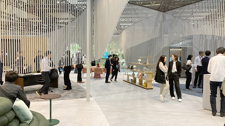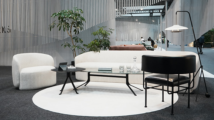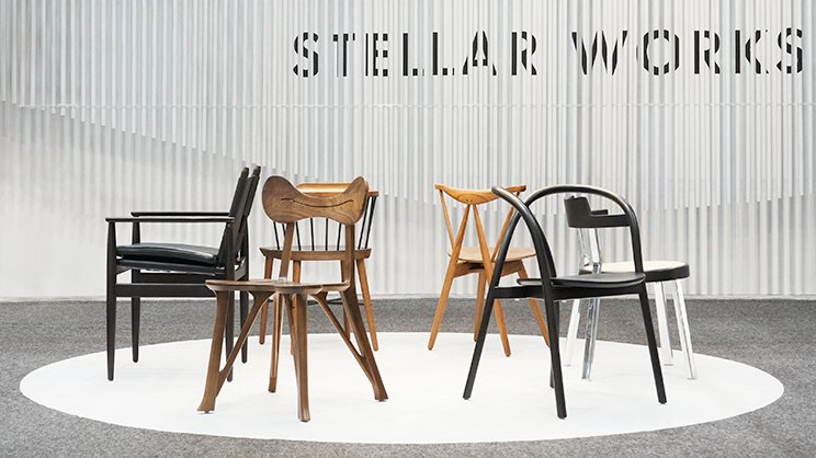 2012年に上海で誕生して以来、著名なデザイナーと次々とコラボレーションし、世界中のホテルやレストラン、オフィスに取り入れられている新進気鋭のブランド「STELLAR WORKS」。東洋と西洋、伝統とモダンといった「クロスカルチャー」をコンセプトとし、まさに世界をボーダレスにつなぎます。今回の展示でも、その「暮らし」と「ワークプレイス」を軽やかに融合させるような独特の空気感を演出しました。