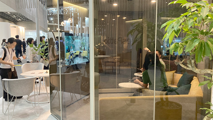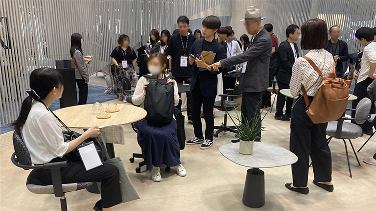 ブースの中も外も大変多くの方に座っていただき、「広い!」「閉塞感がなくて心地いい」「こういうスペースって、すごく落ち着く」「デザインが超カッコいい!」などなど、たくさんのうれしいお声をいただき、私たちにとっても大変うれしい体験となりました!