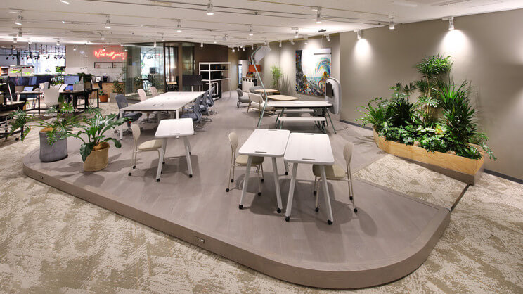 東京・日本橋の本社オフィス兼ショールーム「ITOKI DESIGN HOUSE TOKYO」では、最先端のワークスタイルと働く場を実際に体感していただくことも可能です。