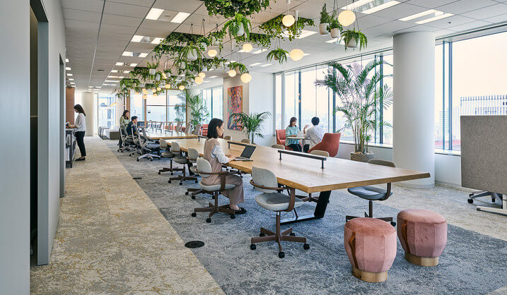 自然素材やグリーン、アートを取り入れたり、自然光を生かした照明やリフレッシュスペースを設けたりすることで、メリハリのついた働きやすいオフィス空間をつくれます。