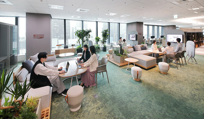 イトーキの「オフィスづくり」は、社員が自然に集い、コミュニケーションが生まれる空間設計を大切にしています。