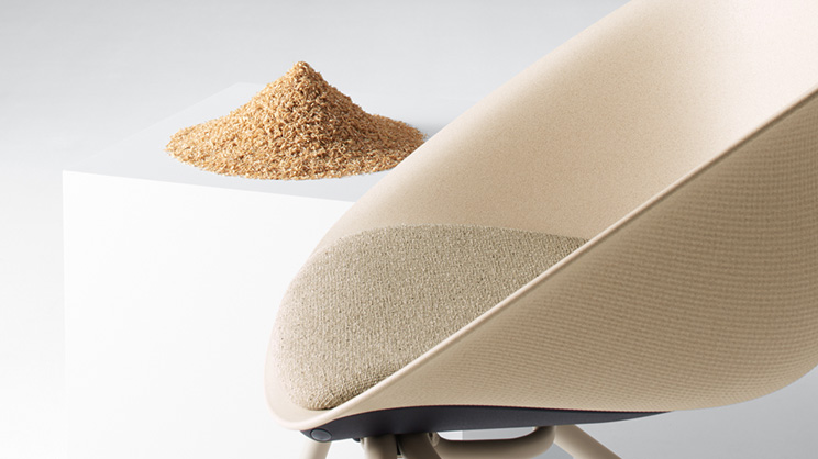 廃棄物を有効活用しながら、しなやかで丈夫な素材特性を活かして快適な座り心地を実現し、環境への配慮と使いやすさを両立した次世代型のサステナブルチェアです。