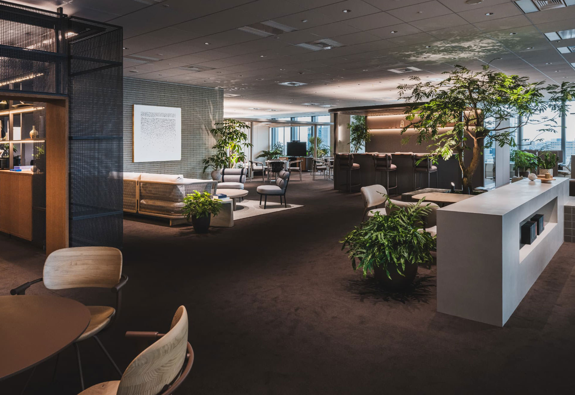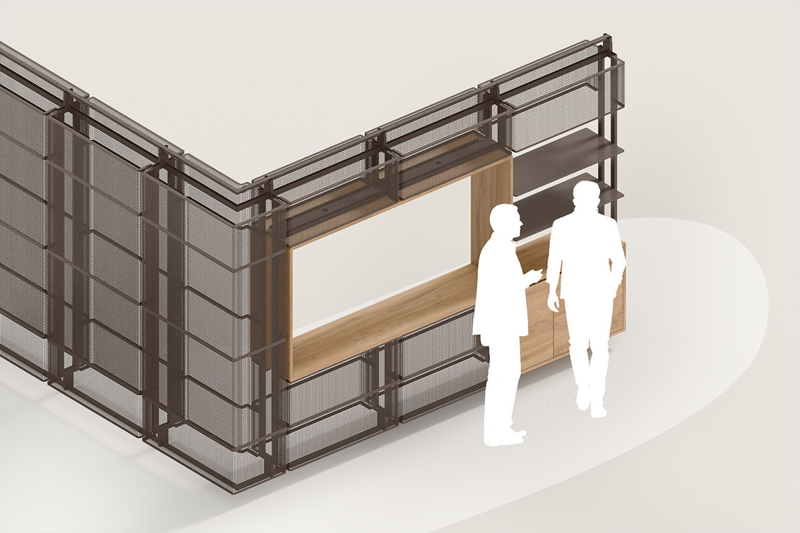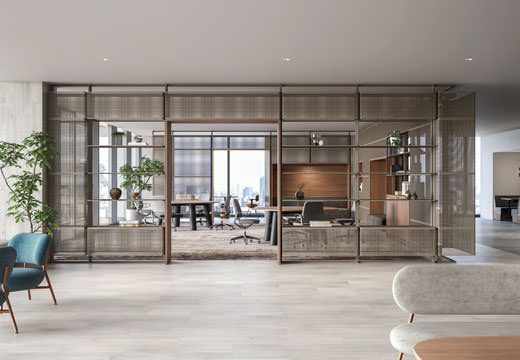 「オパシティ」は、空間に合わせて自由にカスタマイズできる間仕切り。カウンターのように設置すれば、気軽に立ち話ができる場所に。ちょうどいい距離感が、オフィスに心地よさと自然なコミュニケーションを生み出します。