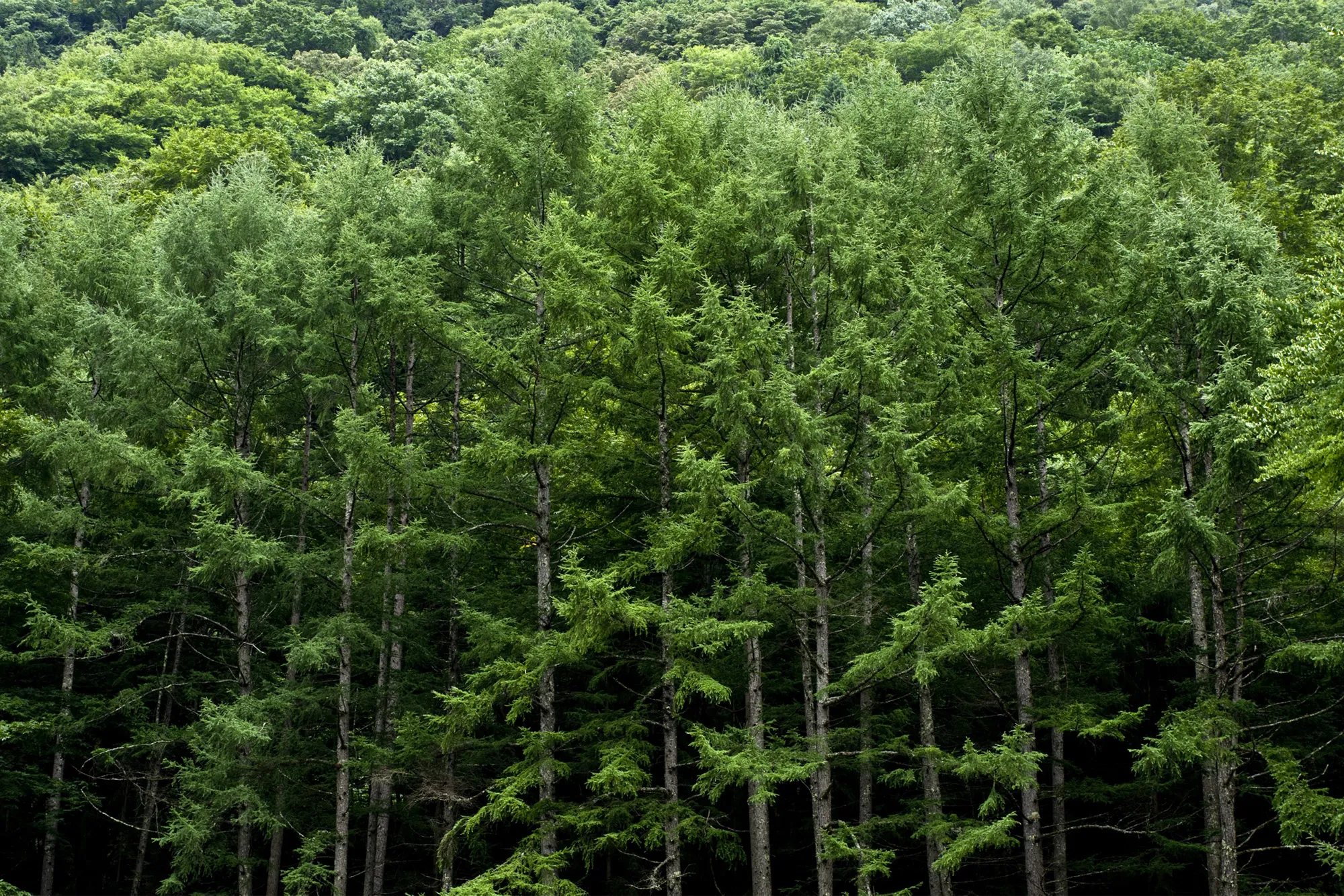 日本は、森林面積が国土の約7割を占める森林大国です。森林のうち約5割が自然の力で生まれ育った天然林で、多くは広葉樹林です。一方、約4割が人が木を植えて作った人工林で、そのほとんどがスギやヒノキなどの針葉樹林です。私たちが暮らしの中で利用する木材の多くは人工林からやってくる針葉樹ですが、自然林や人工林からの広葉樹も利用されています。