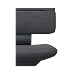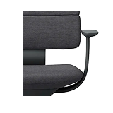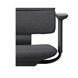 見た目はシンプルですが、イトーキがこれまで培ってきた椅子作りの知見が結集されています。ロッキングは、くるぶしを起点に背と座が動く「アンクルムーブ・シンクロロッキング」を採用。後傾時に各関節が開くため、体に負荷の少ない自然な後傾姿勢をとることができます。ロッキング機構を含む座面下を薄くすることで、すっきりとした印象を保ちながら、体の動きに合わせて動く心地よさを生み出しました。重厚感のあるアルミを使用したアームレストは、T型肘・アジャスタブル肘の2種類。座面下や肘の操作ボタンには手になじむエラストマー素材を採用し、触り心地にも配慮しています。