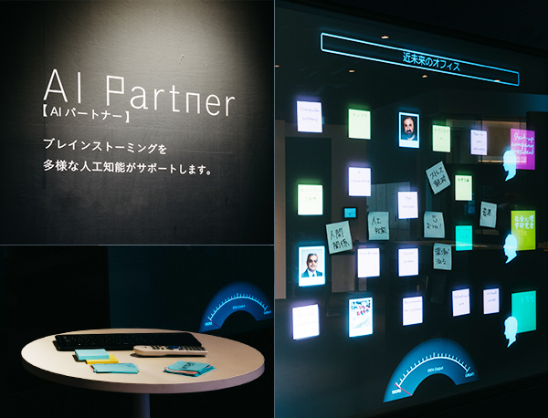 付箋にアイディアを書いて貼ると、パートナーはまるで同僚の一人のように、アイディアに対して反応したり、関連するキーワードを出したりします。