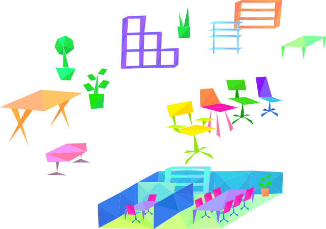 オフィスで不要になった家具の個々の使用状況や劣化度合いを社会全体で共有。家具を手放したい人と、それを必要としている人とをリアルタイムにつなぐ、「資源交換型」という新しいオフィスづくりを普及する。