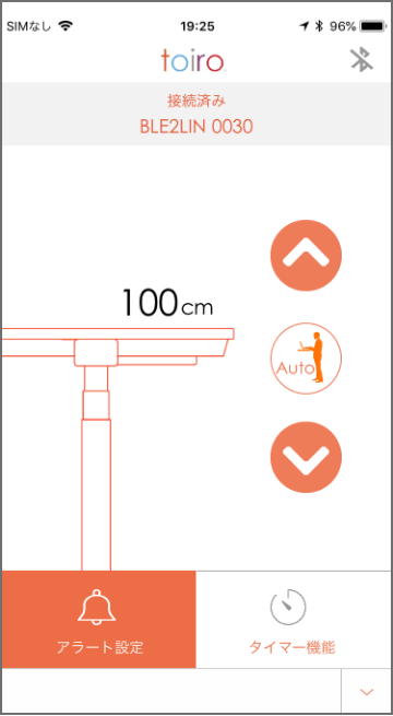 アプリのリモコンメニューを開くと、上下ボタンが出現。それらを押すことで天板の高さが変更できます。