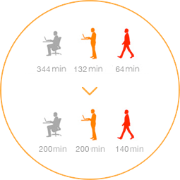毎日、計測することで、オフィスで活動選択する際の意識が変化し、あなたの働き方変革をサポートします。