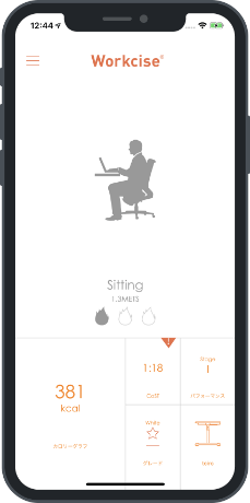 オフィス活動計測アプリ「ワークサイズ」は、アプリを起動し、持ち歩くだけで「立つ」「歩く」「座る」といったオフィス活動を計測し、あなたの働き方を数値化。毎日計測することで意識が変化し、働き方変革をサポートします。