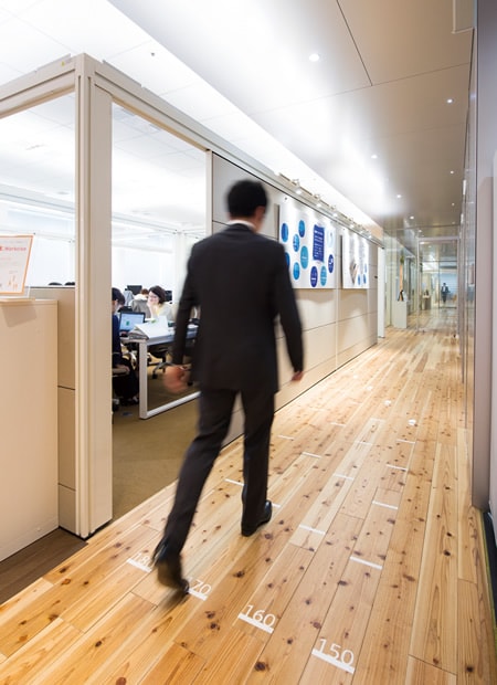 意図的に歩くことを促す動線計画や、サイン、照明など、仕事と健康を両立する、さまざまなノウハウを提供します。