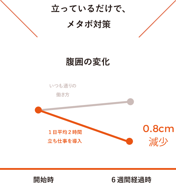 屋外やスポーツジムなどで行う健康活動ではなく、たとえば立って仕事をする、誰かの席まで歩いていくといった“仕事にも健康にも良い行動”のことです。